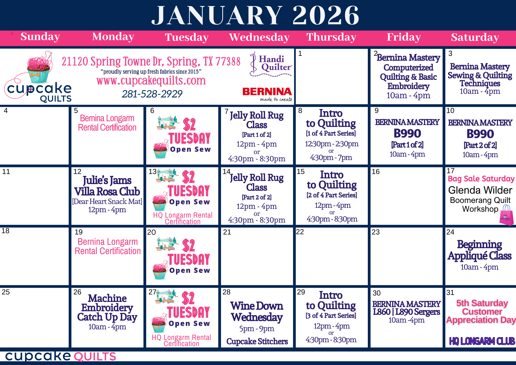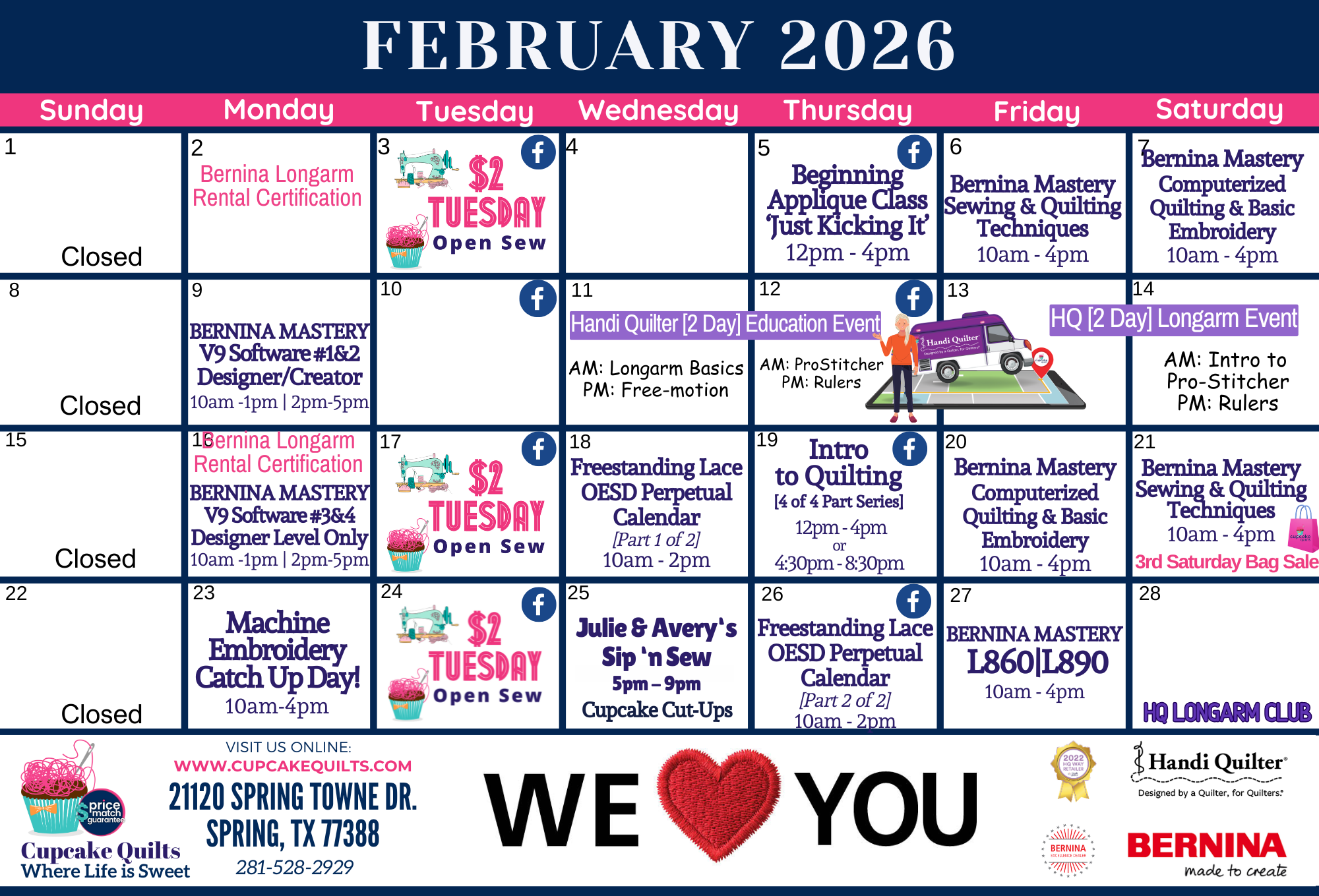 The HQ Van is headed to Cupcake Quilts for four days of hands-on longarm education! Join National Educator Jeannine Grabowska and step up to longarm quilting when you sign up for our TWO DAY event.